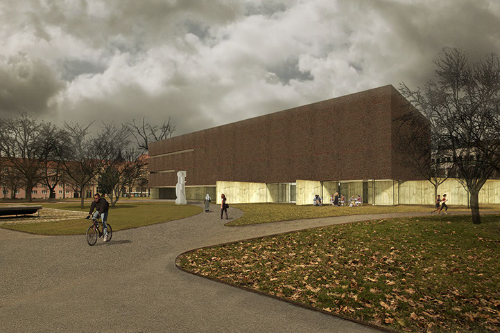 Um Museu da Bauhaus é naturalmente um projecto com um especial significado para a cidade de Dessau. O sítio escolhido para a sua implantação demonstra esta realidade claramente.A proposta procura tirar partido desta localização, transformando o museu no principal ponto de passagem entre o Centro e o Parque da Cidade, através de um atravessamento no nível térreo, situado entre os principais espaços “públicos” e as zonas de serviço do edifício. É posicionado um volume, uma caixa de linhas claras, no topo dos planos que definem este piso. Dois grandes “poços” existem nesta massa: um corresponde ao espaço central do foyer, coberto por um lanternim; o outro ilumina o caminho para o Parque. O volume paralelipipédico alberga os espaços de exposição e a maioria dos espaços técnicos de apoio e administração.A materialidade do edifício enfatiza este conceito claro. A “caixa” paralelipipédica é revestida em tijolo maciço, apoiada nos planos de betão aparente do piso térreo, que por sua vez se estendem igualmente pelo terreno envolvente, integrando o Parque na proposta.