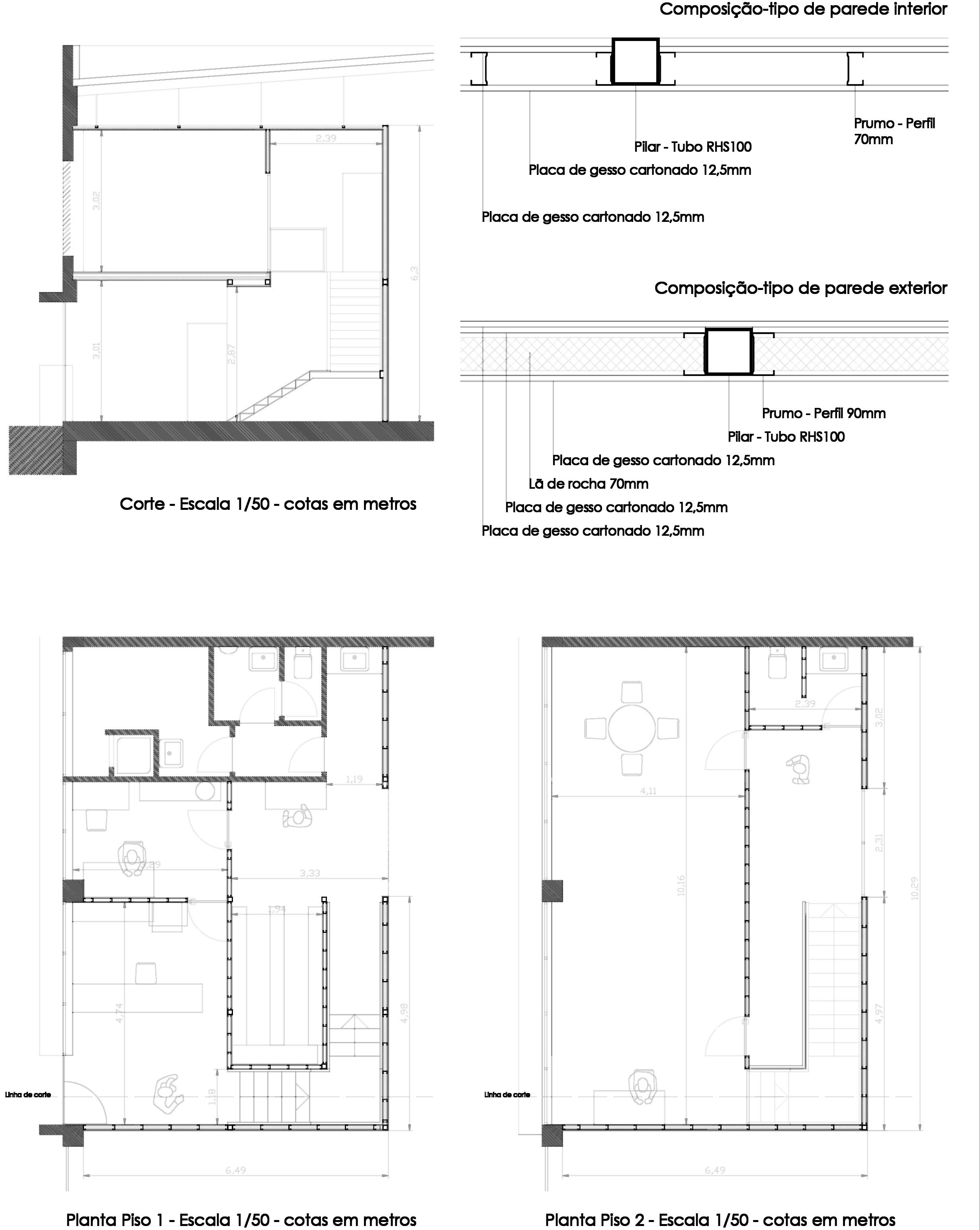 The main problems were the limited available space and the different uses that were to exist, from receiving and meeting with clients, to office and storage rooms, as well as service facilities for the employees.