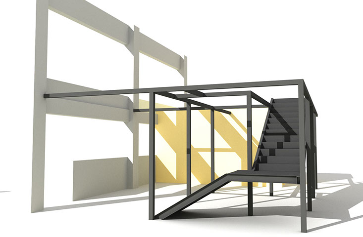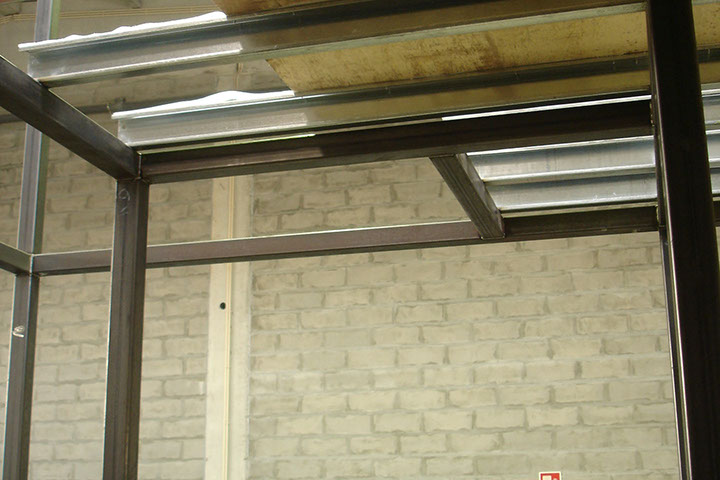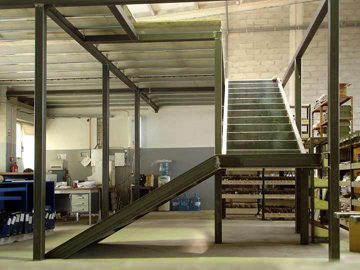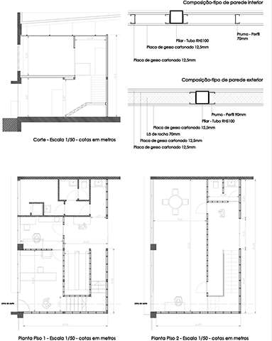Um dos primeiros trabalhos próprios, começado durante o final do curso de Arquitectura. Era necessário criar um espaço de escritório no interior de um pavilhão industrial. As principais questões prendiam-se com o limitado espaço disponível, as diferentes funções que deveriam co-existir – recepção e reunião com clientes, gabinetes e arrumos, zonas de serviço para funcionários. O cliente requeria a clara separação destes usos em relação à área de laboração industrial adjacente, daí o aspecto encerrado, de “caixa”, da zona dos escritórios. Simples no sistema construtivo e nos materiais (estrutura tubular de ferro e compartimentação de gesso cartonado com isolamento), procurou-se contudo elaborar um projecto detalhado e rigoroso.