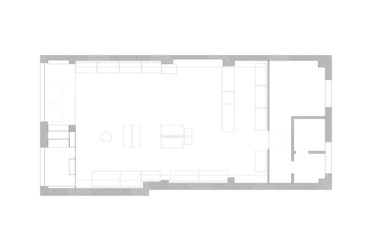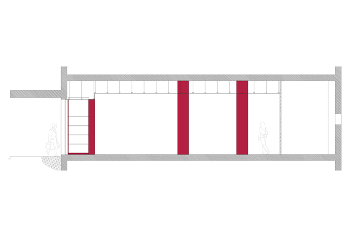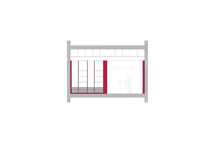 entre a área pública da loja e os espaços de apoio nas traseiras,